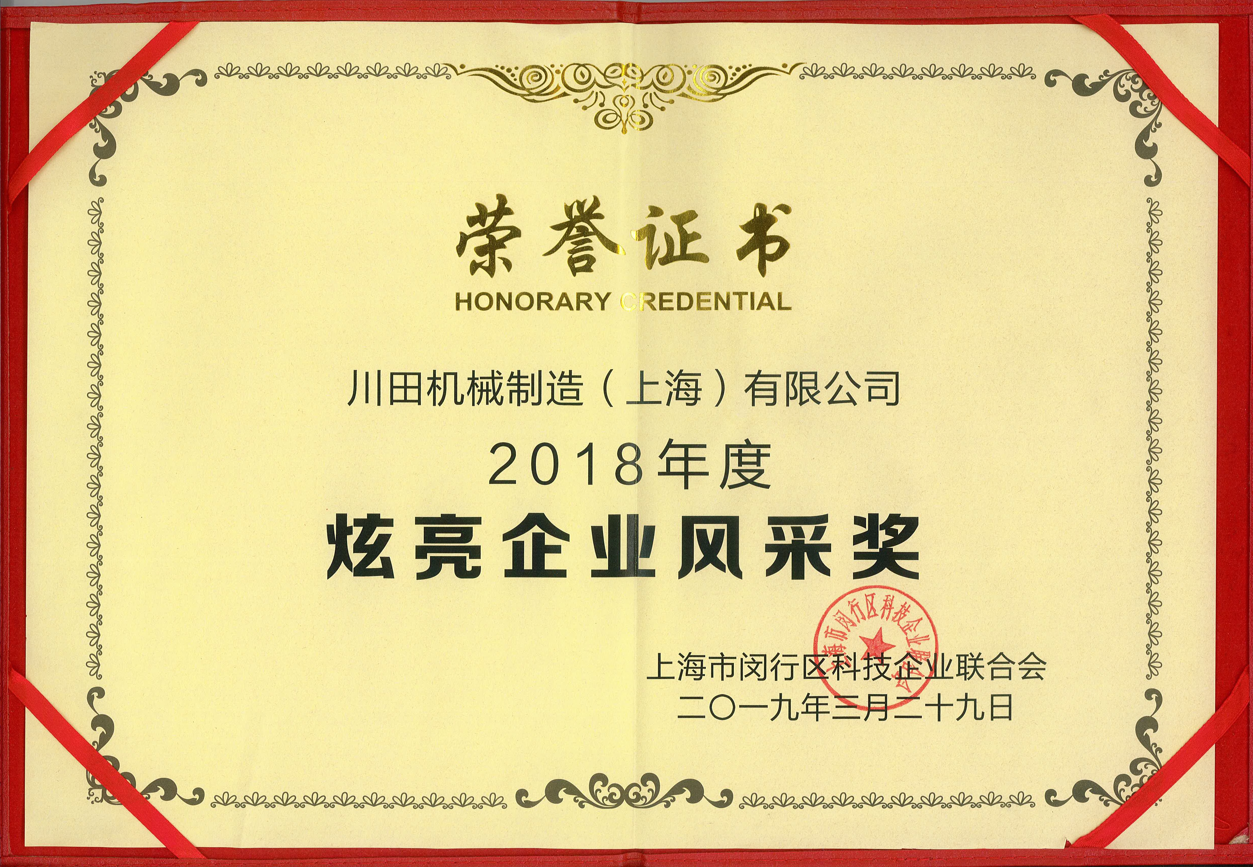 2018 莘莊工業(yè)區(qū) 炫亮企業(yè)風(fēng)采獎狀